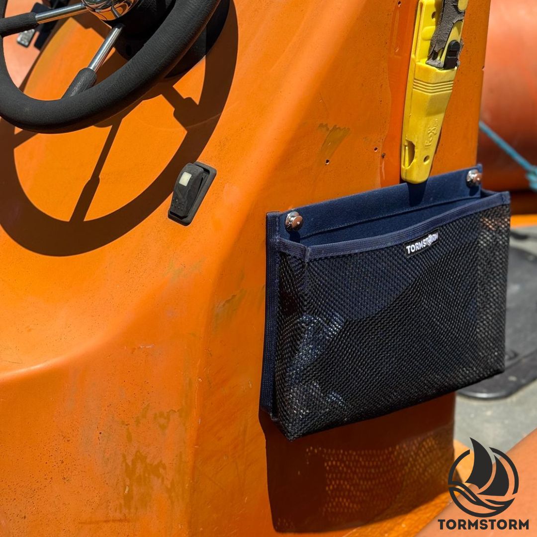 Kieszeń wykonana z szybkoschnącej siatki zapewnia widoczność zawartości i wentylację. Dzięki uniwersalnemu rozmiarowi pasuje do większości modeli motorówek, RIB-ów i łodzi elektrycznych.