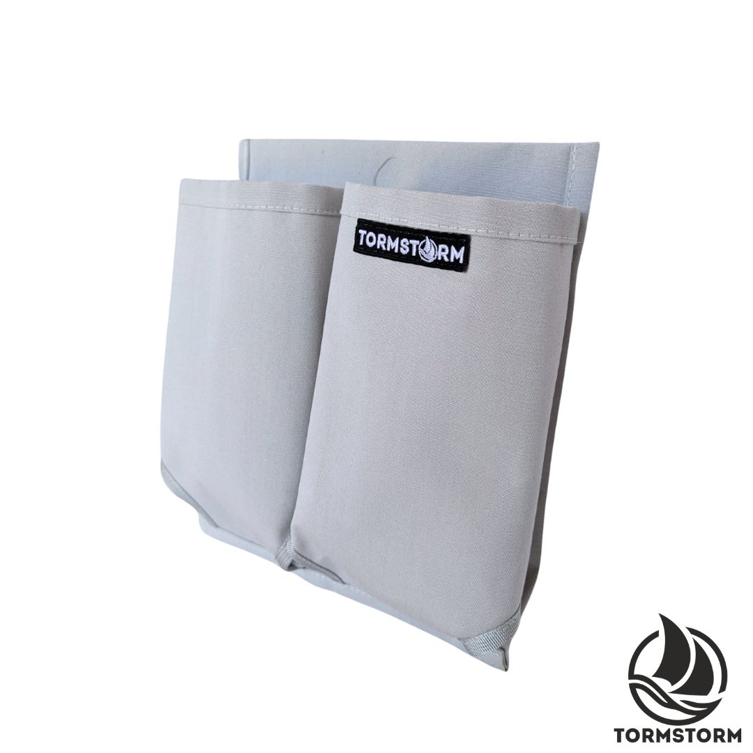 Podwójna kieszeń fałowa to praktyczne rozwiązanie dla mniejszych łodzi turystycznych z mniejszą ilością olinowania. Umożliwia wygodne i bezpieczne przechowywanie lin w kokpicie, czy schowanie drobnych przedmiotów potrzebnych podczas rejsu.