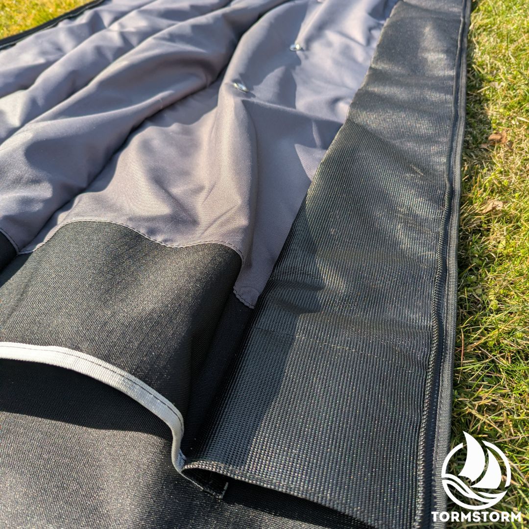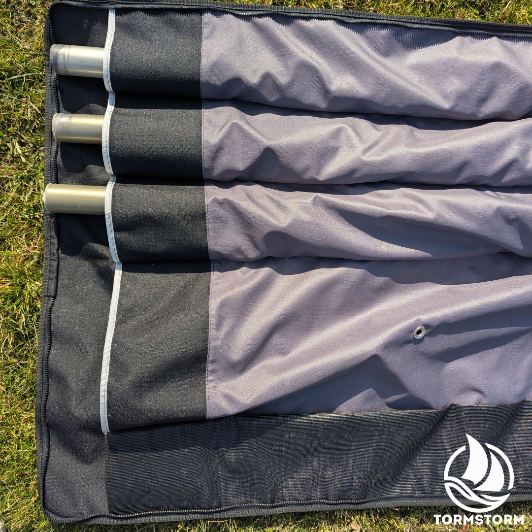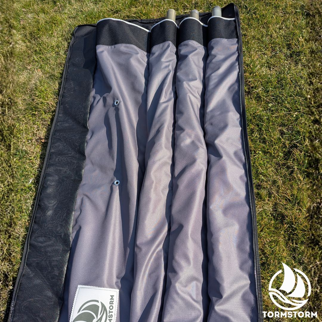 Wnętrze oferuje trzy dedykowane kieszenie na elementy omasztowania — bom, maszt i rozprzę — oraz większą kieszeń na żagiel. Dodatkowa kieszeń z siatki PCV pomieści pozostałe niezbędne akcesoria, pomagając utrzymać wszystko na swoim miejscu.